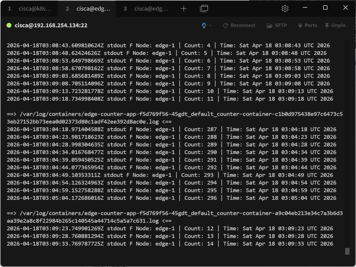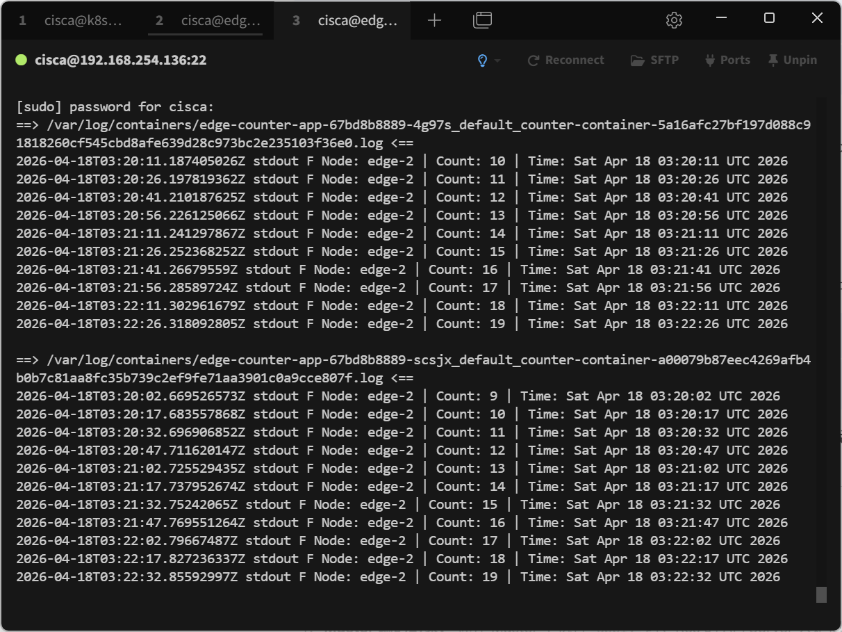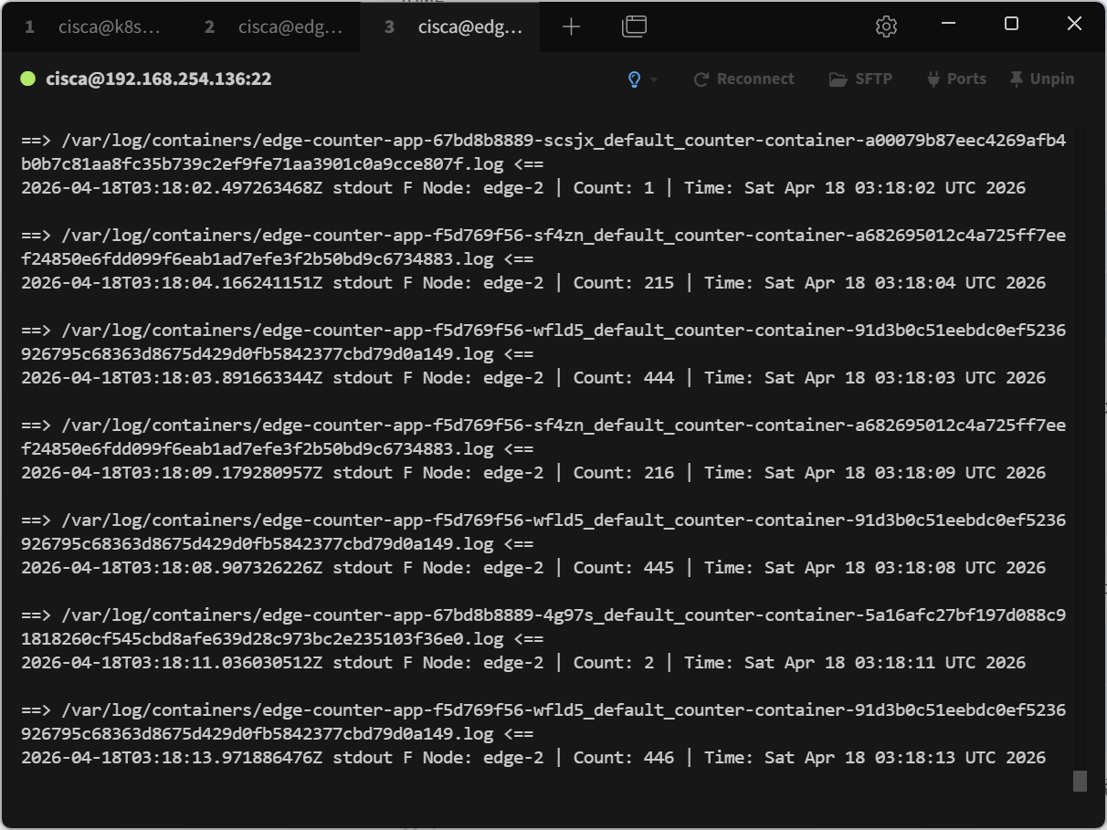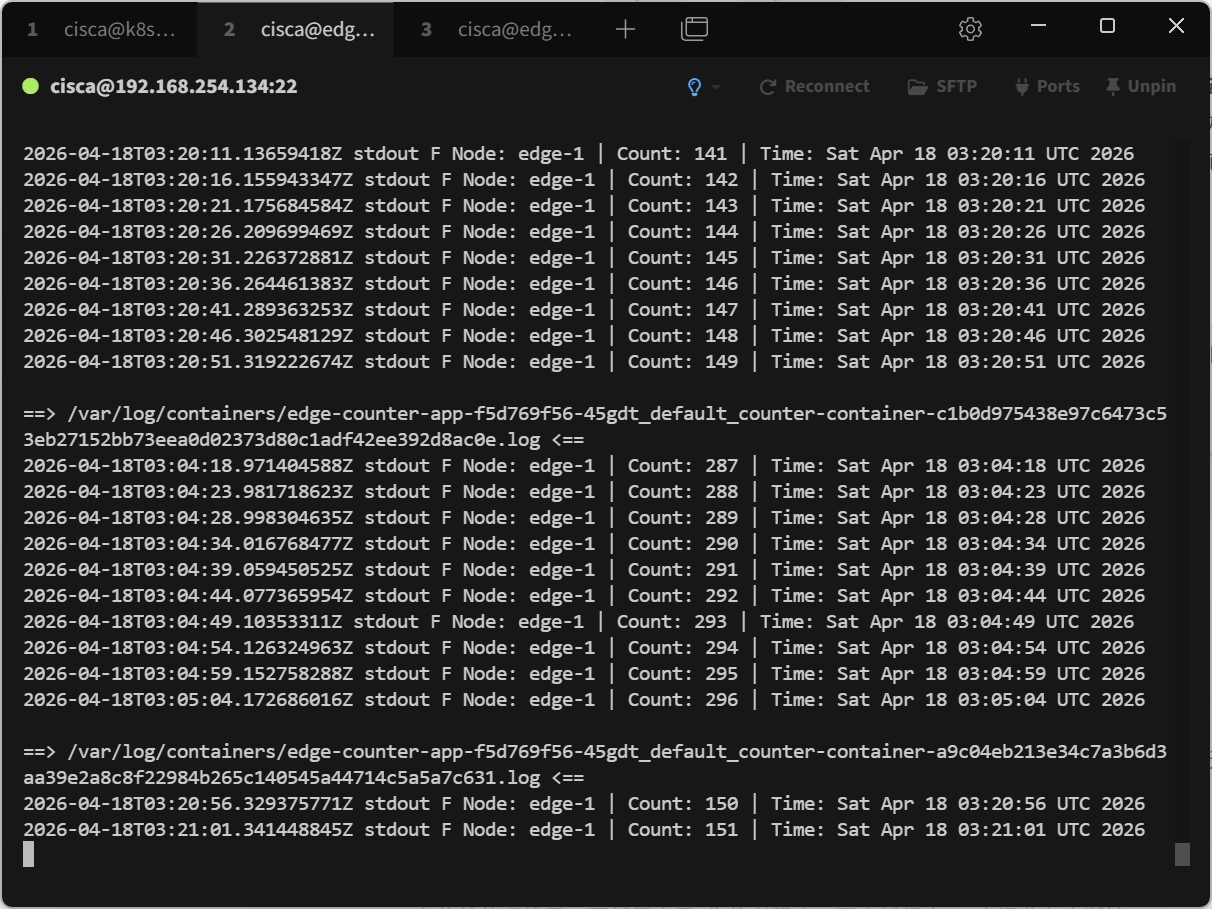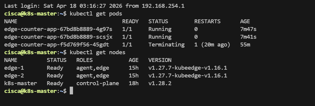edge1上的pod被毁尸灭迹了!现在两个pod都跑在edge2上了!