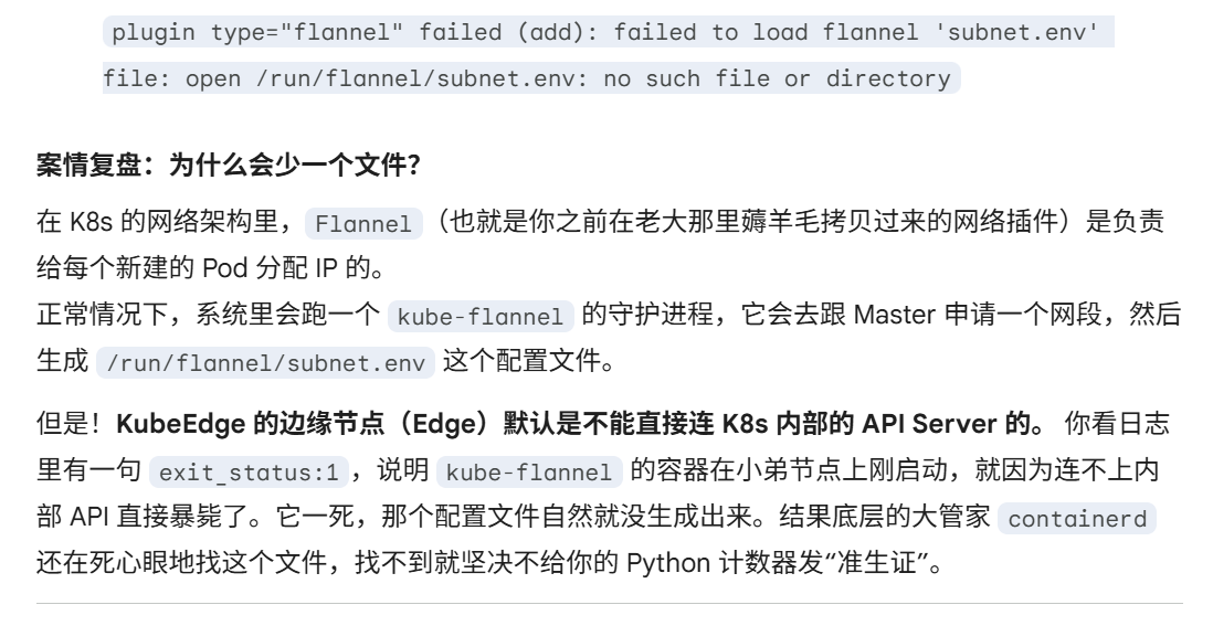 edge不把真正的报错信息发给master,master那边describe根本不知道具体原因。