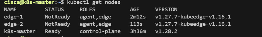 1. 3台机器,一台安装k8s,两台安装Kubeedge