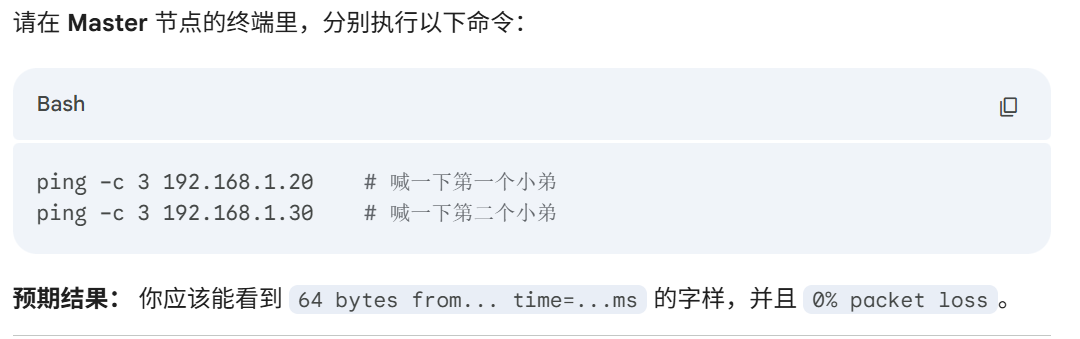 三台服务器都配置好LAN后可检查一下是否能ping通: